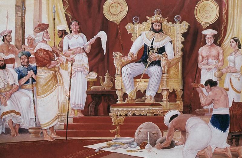 This was a mainly hereditary corporation of the best craftsmen who worked exclusively for the king in Kandy. Originally there was only one pattala but this was subsequently divided into sections which included a Randaku pattala (golden sword armoury or workshop). As well as being worn by courtiers, these knives were given by the king to nobles and to the temples. "The best of the higher craftsmen (gold and silversmiths, painters, and ivory carvers, etc.) working immediately for the king formed a close, largely hereditary, corporation of craftsmen called the Pattal-hatara (Four Workshops). They were named as follows; The Ran Kadu Golden Arms, the Abarana Regalia, the Sinhasana Lion Throne, and the Otunu Crown these men worked only for the King, unless by his express permission (though, of course, their sons or pupils might do otherwise); they were liable to be continually engaged in Kandy, while the Kottal-badda men were divided into relays, serving by turns in Kandy for periods of two months.
