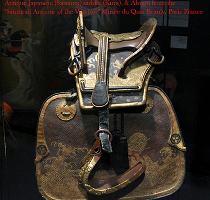Abumi, Japanese stirrups, were used in Japan as early as the 5th century, and were a necessary component along with the Japanese saddle (kura) for the use of horses in warfare. Abumi became the type of stirrup used by the samurai class of feudal Japan Early abumi were flat-bottomed rings of metal-covered wood, similar to European stirrups. The earliest known examples were excavated from tombs. Cup-shaped stirrups (tsubo abumi) that enclosed the front half of the rider's foot eventually replaced the earlier design.