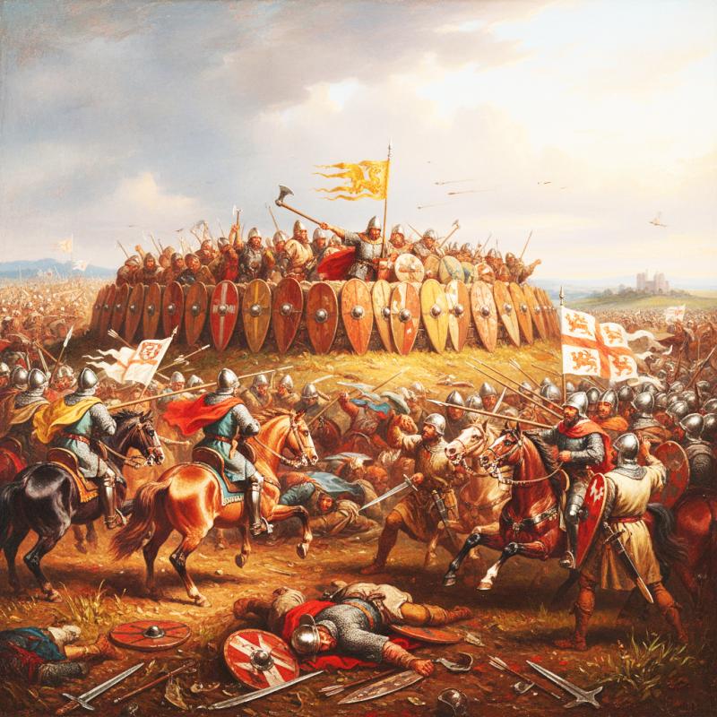 The Battle of Stamford Bridge (Old English: Gefeoht æt Stanfordbrycge) took place at the village of Stamford Bridge, East Riding of Yorkshire, in England, on 25 September 1066, between an English army under King Harold Godwinson and an invading Norwegian force led by King Harald Hardrada and the English king's brother Tostig Godwinson. After a bloody battle, both Hardrada and Tostig, along with most of the Norwegians, were killed. Although Harold Godwinson repelled the Norwegian invaders, his army was defeated by the Normans at Hastings less than three weeks later.
