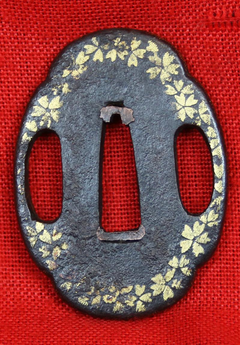 A Truly Beautiful Antique Koto Period, 'Dragon Head' Hamon, Unokubi (鵜首) Zukuri Blade Tantō. In a Chesnut and Sable Livery, Matsushiro Sinano Koshirae With Kozuka and Kogai, with Higo Scool Tsuba Inlaid With Pure Gold Sakura {Cherry Blossom}