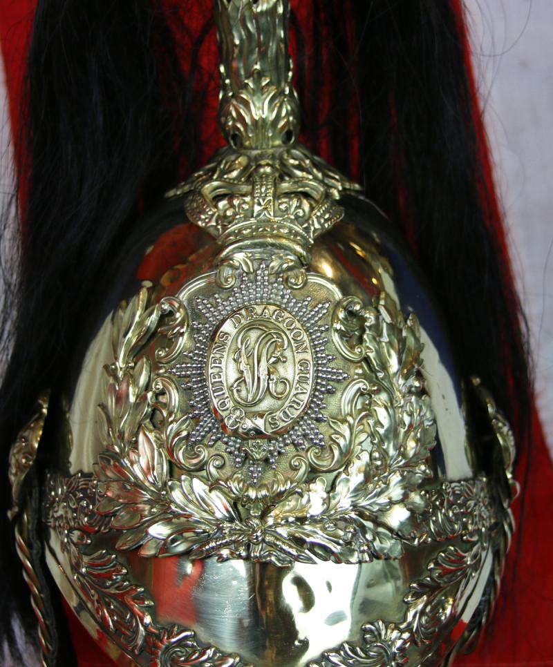 Whereas there are only a few officers helmets in existence of this vintage, other ranks' helmets are even rarer. This is a 2nd Dragoon Guards helmet with the correct black plume, and in overall good condition, the original plume has service wear.