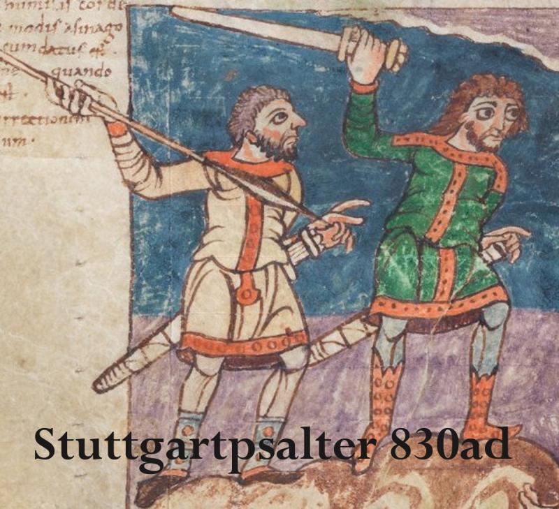 Picture 7 in the gallery is a page from the Stuttgart Psalter, circa 830 ad, that clearly shows the Viking age sword, and its distinctive lobed pommel, being wielded by a Viking lord, and another within the other noble's scabbard, who also wields a spear.