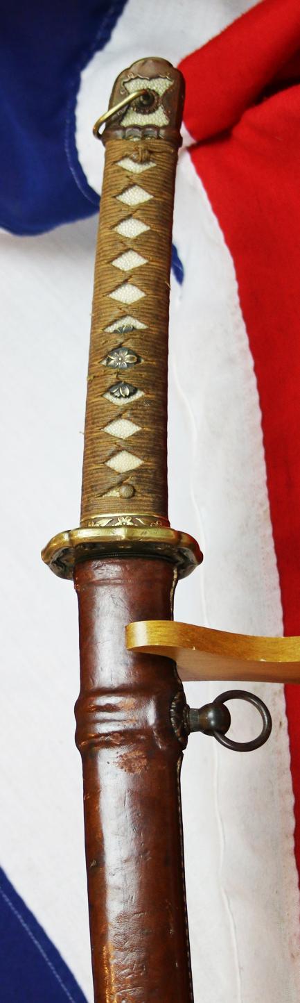 All the mounts, tsuba, seppa etc are very good indeed, as it the original field service combat leather cover on the saya.