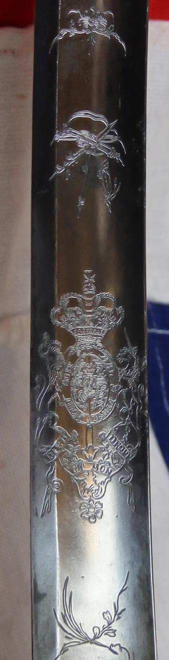 29 inch blade, nicely maker marked by Runkel, a famous London based German emigre sword cutler/supplier, of somewhat dubious repute in his day. A most fascinating entrepreneurial King George IIIrd sword cutler and supplier who was arrested and imprisoned on numerous occasions for attempting to evade import duty on his Solingen made blades. He also imported 100 blades personally for His Royal Highness the Prince of Wales {later the Prince Regent} for the officer's swords of his 10th Light Dragoons regiment
