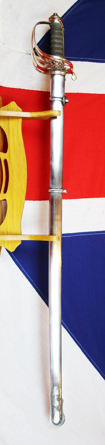 Traditional gilt hilt of Gothic form, pierced with Queen Victoria's cypher, a very fine deluxe etched finest bespoke made blade, and gilt brass scabbard, that denotes the owner to be of 'field rank' that is for the use of Majors, Colonels, Brigadiers and above whilst serving within the British Infantry. More photos to add later today.