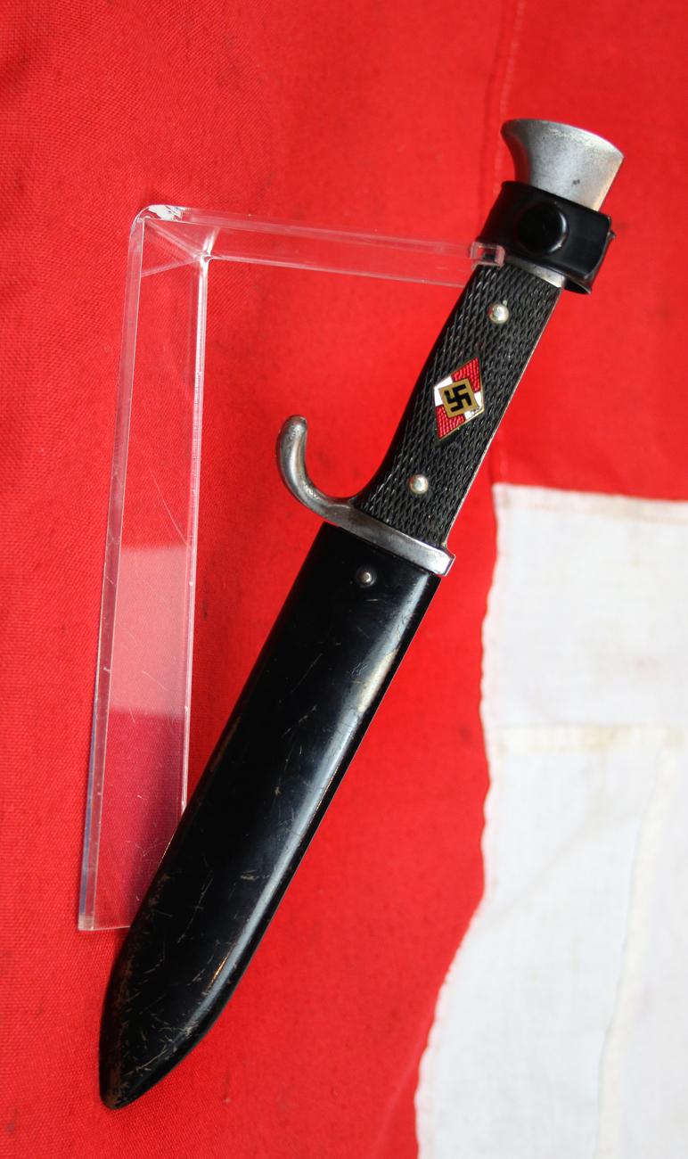 A Good Hitler Jugend Dagger 1936 By Puma {Coded M7/27} Blut und Ehre Blade. Scarce Transitional Early Period Dagger Which Bears Its Makers Name and RZM Code