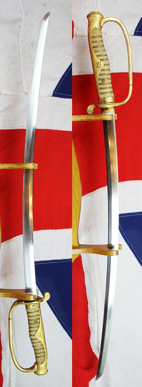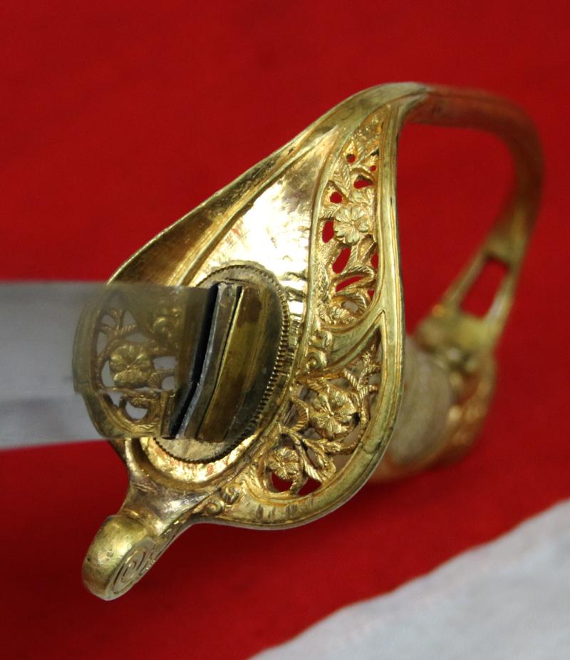The Kyu gunto was a sword that began to cross the divide between the traditional Samurai sword, that was banned in the era of the Meiji Emperor, and the modern Western style sabre, but occasionally permitted to be fitted with a family ancestral samurai sword blade. The Kyu gunto style was adopted by the Imperial Japanese Army in the 1870's. By the early 1900's the Japanese officer class began more and more to see themselves as the reincarnated embodiment of the old Samurai warrior class, and the desire for the return to the traditional Bushido warrior code was becoming a powerful force. Modern Western styles had been faithfully adopted and the Imperial Japanese military had joined the rest of the civilised world in all it's advancements and technology in weaponry and uniforms that it had to offer. However, the officer class saw a threat to their long felt superiority over all others as their dress made them all but indistinguishable from soldiers of other inferior nations. A resurgence in the Samurai ethic needed a connection to the modern uniform, so a return to the Samurai sword was achieved in combat, but still with the visible connection to more modern Western dress form.