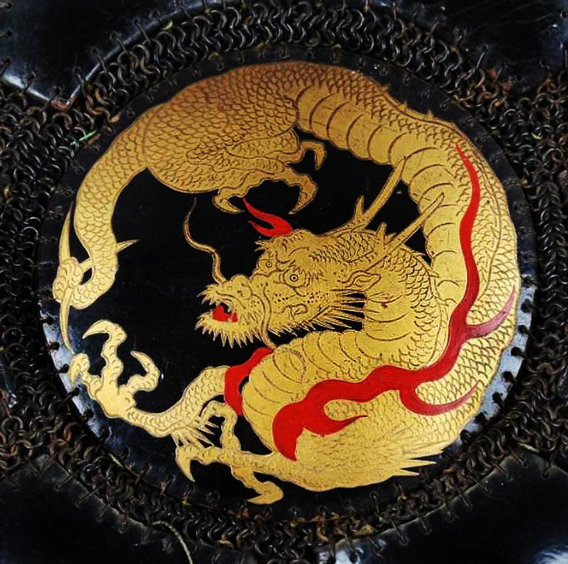 A simply stunning black urushi lacquer, and pure gold decorated, Nichiren-shu Ryu no Maru dragon mon centre panel.