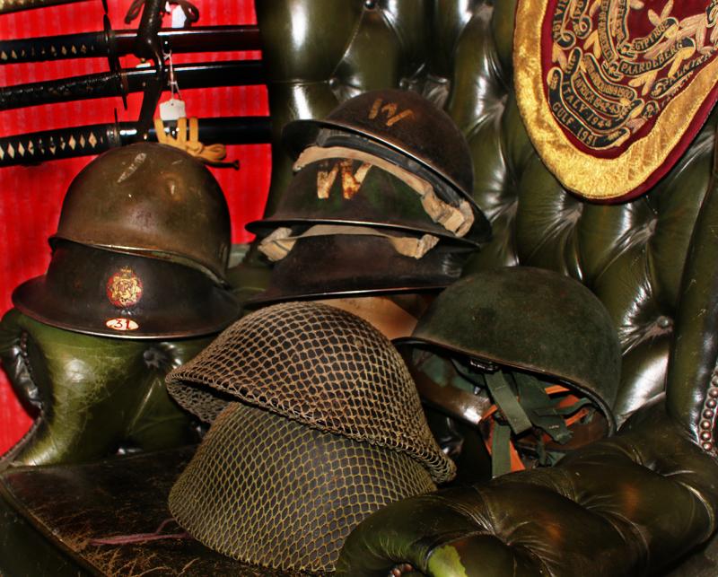 A Super Collection Of British WW2 Brodie Helmets & 'Turtle' 1944 D Day Pattern Helmets, And American GI M1 Pattern Helmets and Liner