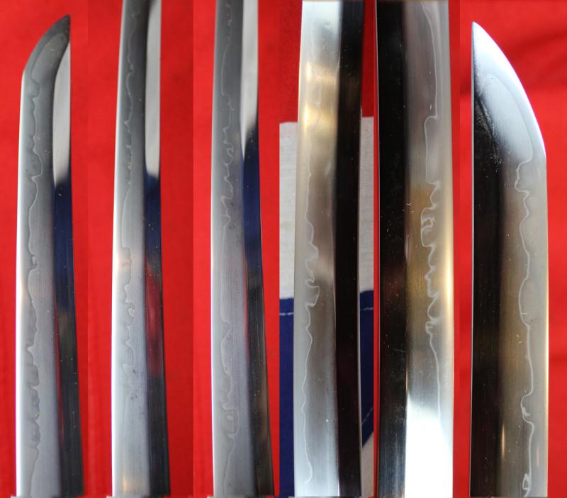 Often features itame (wood grain) mixed with mokume ( burl grain), ji-nie, chikei, and utsuri, with a hamon of midare (irregular) with ko-notare (small drops) and ko-gunome (small arcs).