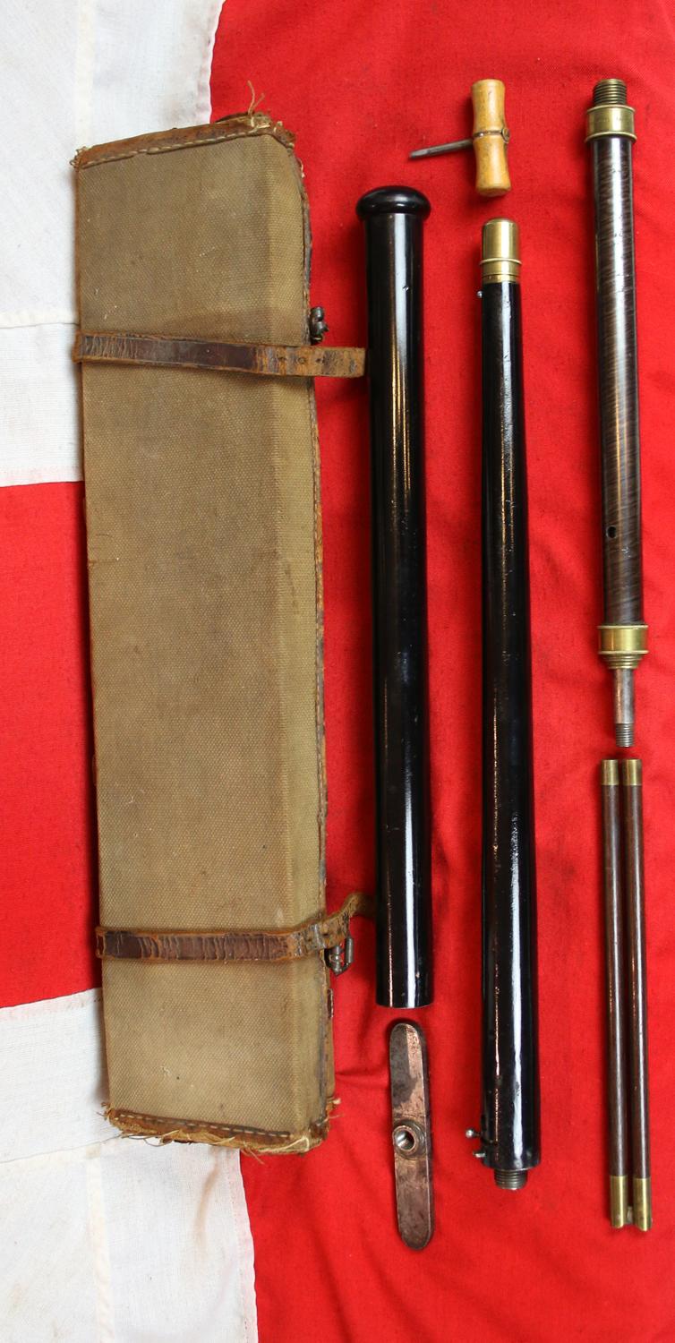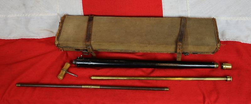 What A Unique And Incredible Christmas Gift This Could Be, A Stunning Mid Victorian Antique Gadget Rifle Gun Stick Fully Set Within Its Original Hard Canvas Travelling Gun Case With All Accompanying Tools. Unique Collectors Piece From Victorian England