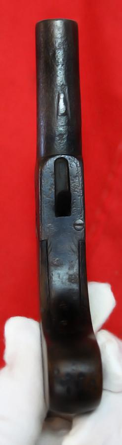 Circa 1830. Boxlock pistols were pocket pistols popular in the late 1700s and early 1800s. Effectively the first Derringers. The most unique feature of their design was the boxlock mechanism. Unlike most firearms which have the hammer located off to the side of the pistol, a boxlock pistol had the hammer located directly on top of the pistol. They were called a boxlocks because all of the working mechanisms for the hammer and the trigger was located in a box or receiver directly below the top mounted hammer. While the hammer obstructed the aim of the user, this system had the advantage of making the gun more compact and concealable than other pistols. The first boxlock pistols were flintlock and where later made in percussion lock. Unlike modern firearms, these pistols were not mass produced, but were hand made in gunsmith's workshops.