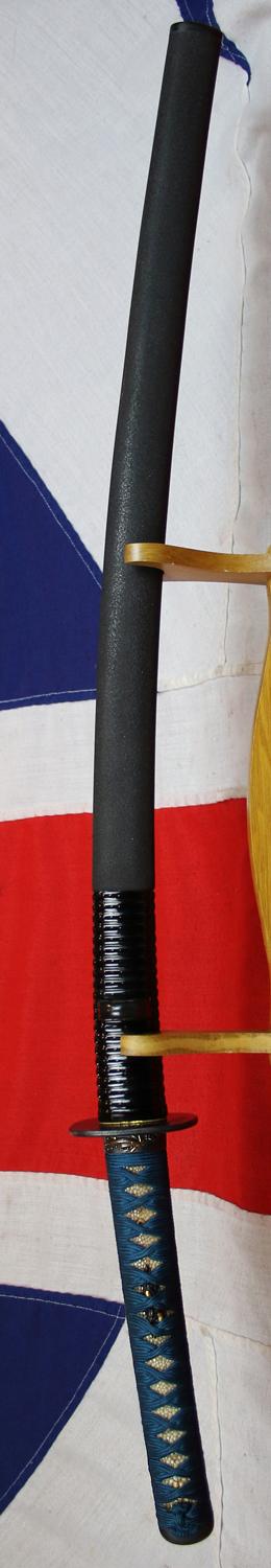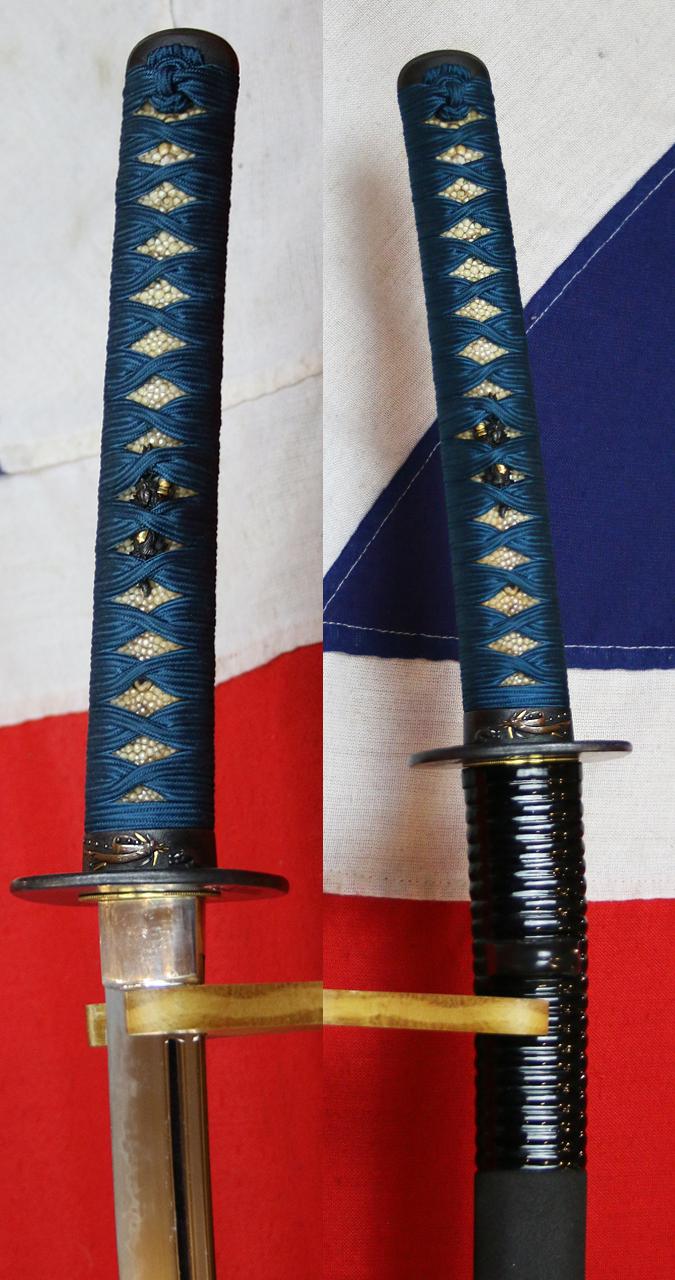 The rich mid blue-green torqoise tsuka-ito has just been beautifully restored, as has the black saya, with a ribbed top section, and ishime {stone finish} lacquer to the rest, and as hoped it once again looks absolutely fabulous. A true beauty of an early, signed, samurai art and combat sword, around 550 years old, and a signally fine piece, worthy of any museum grade collection.