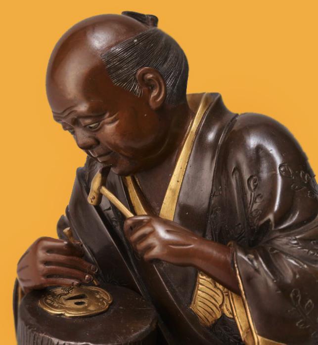 It is engraved with the Nikubori Jisukashi. Nikubori Jisukashi is a Japanese tsuba (sword guard) carving technique, translating to "relief-carved openwork" (肉彫地透). It combines thick, high-relief (nikubori) sculptural carving with openwork (sukashi) techniques on the iron plate (ji). Primarily used during the Edo period by schools like Shoami, this style creates a three-dimensional effect, making the motif stand out from the ground, often featuring detailed, rounded figures rather than simple silhouettes.