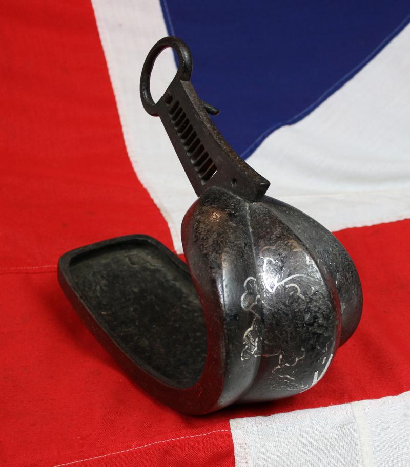A Very Attractive, Edo Era 17th to 18th Century Samurai's Tetsu Abumi Stirrup, Inlaid With Silver in a Pattern Of a Flower Mon