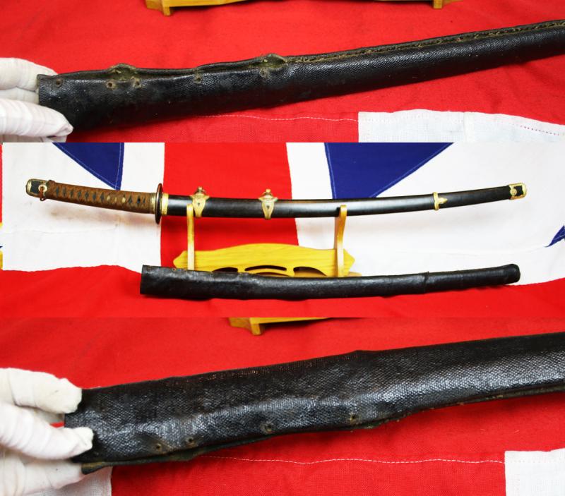 We have photographed the unstitched Japanese Naval foul weather cover, which is included with the sword, as it's important to keep with its history.