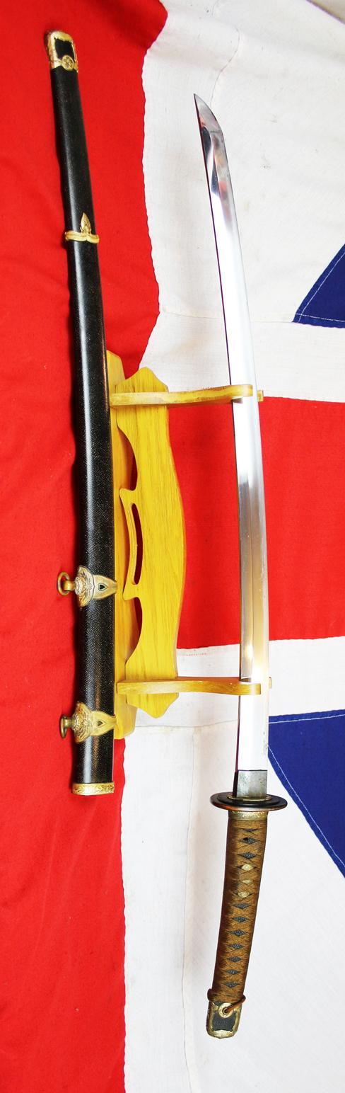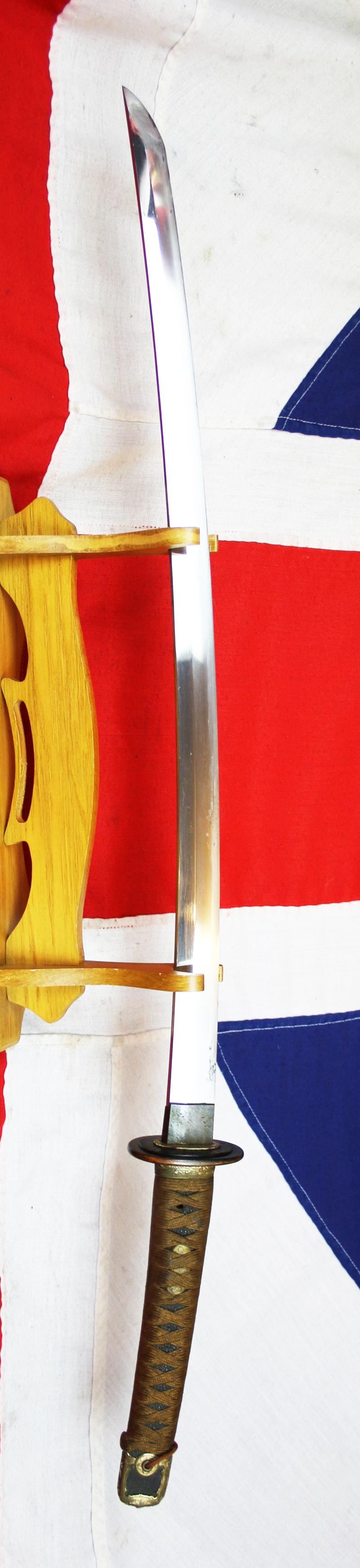 It has a super blade, and Japanese Kai-Gunto naval officers swords are somewhat rare to survive, given that they usually went down with the ships with their officers, that suffered badly from the continued well deserved assaults from the allied navies, though, to a degree mostly from the US Navy, with the British Pacific Fleet from 1944, with the Australian navy. This particular example has the typical WW2 pattern fittings