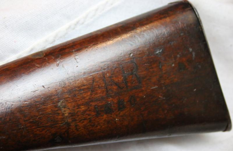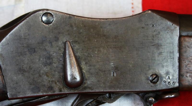 receiver markings, which resulted in the marking being skewed to the right of centre, just as this Martini-Henry has, whereas rifles made originally, from 1876, as a MK II issue would have this marking centered.